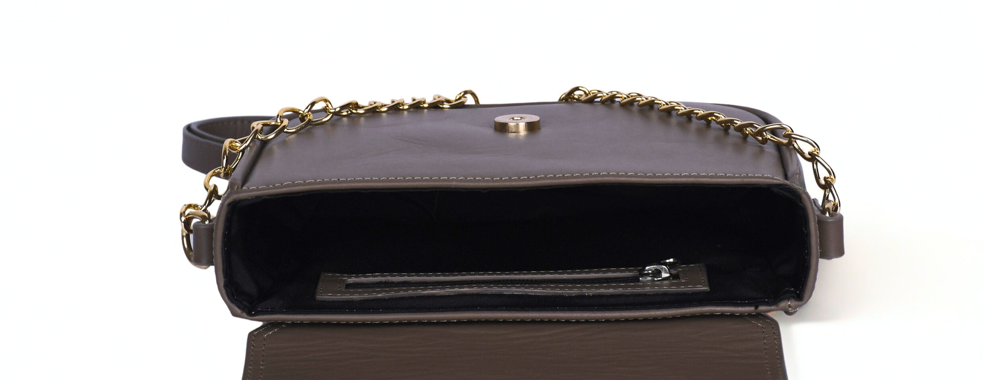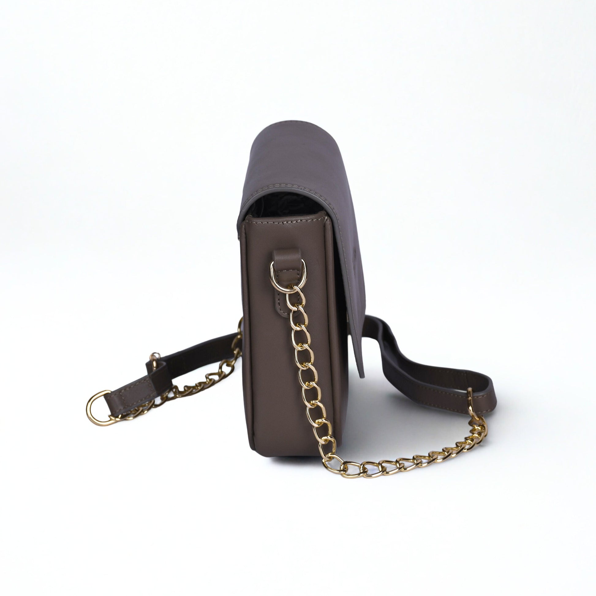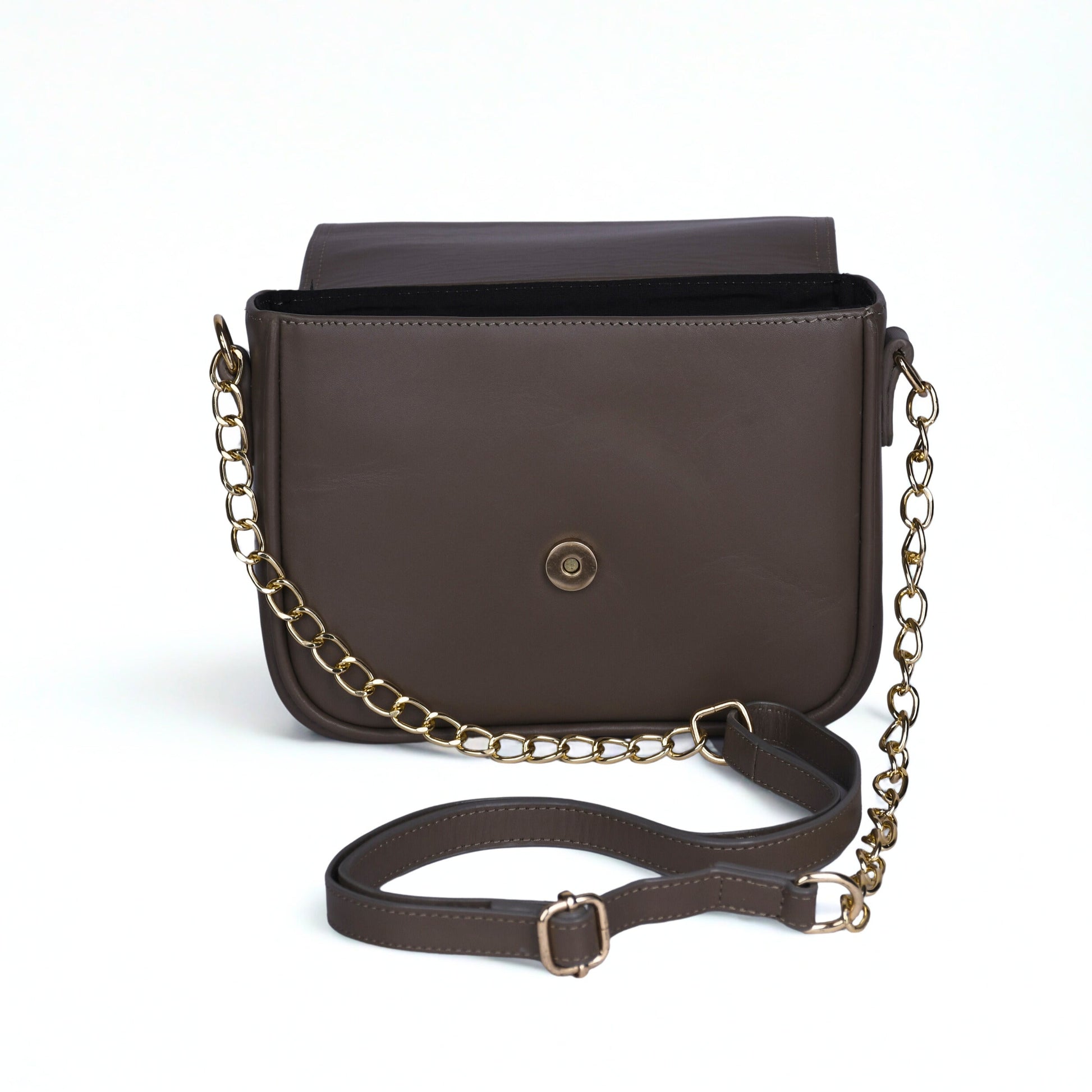 Structured. Sleek. Uncompromising. This crossbody blends smooth leather with a gold-tone chain strap for a sharp, everyday edge. Flap closure keeps it minimal. The silhouette speaks for itself.
