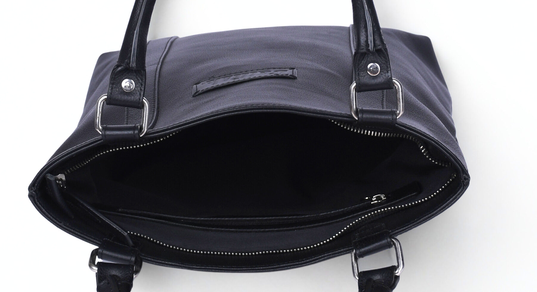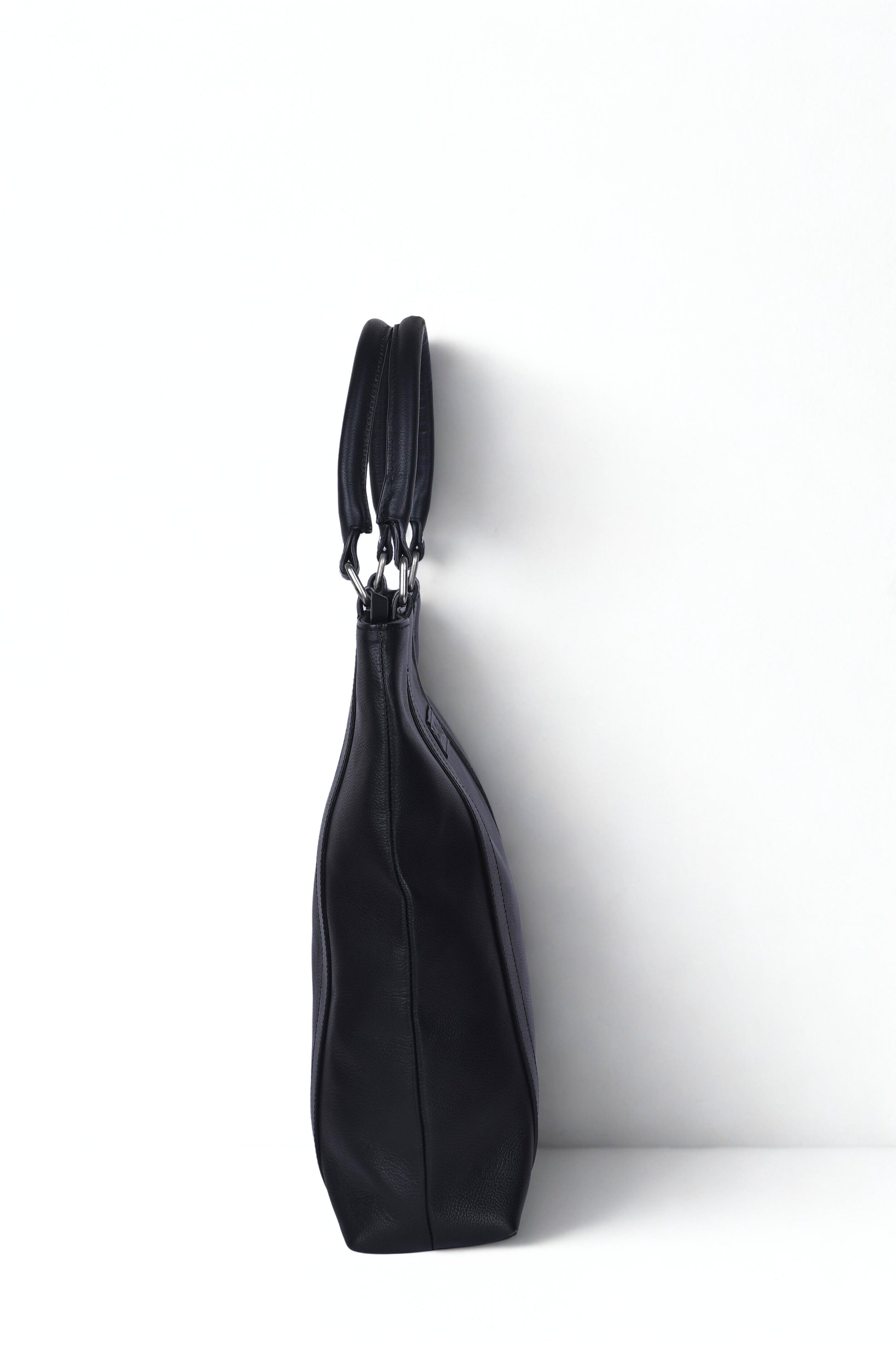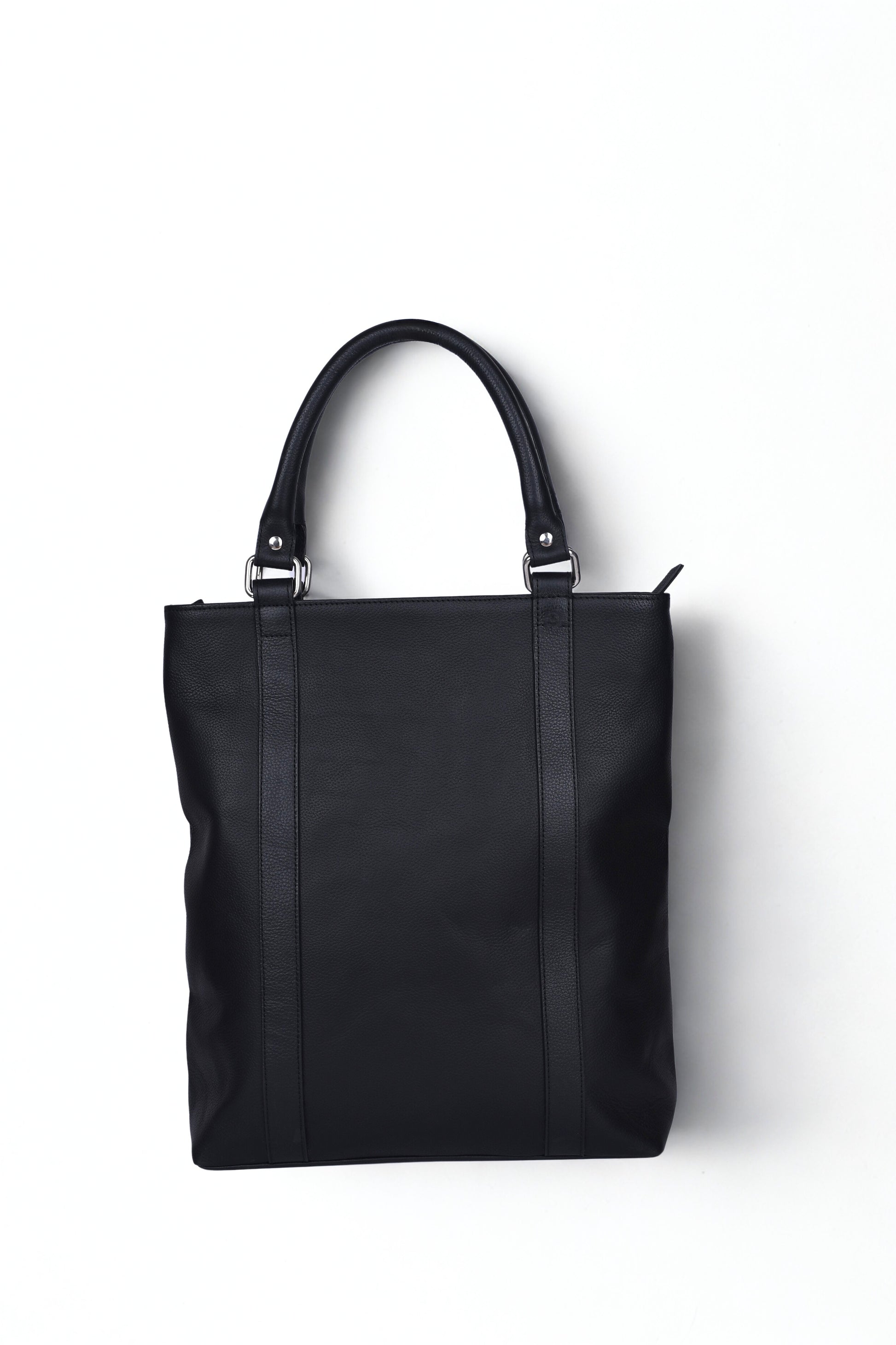 Crafted from premium black leather, this minimalist tote features a sleek silhouette, vertical stitching, and silver hardware. The top-zip closure ensures secure storage, while dual handles offer comfortable carry. Ideal for work, travel, or elevated everyday wear.