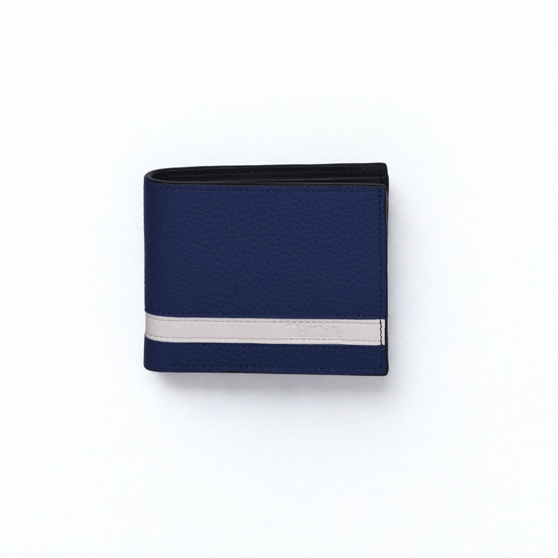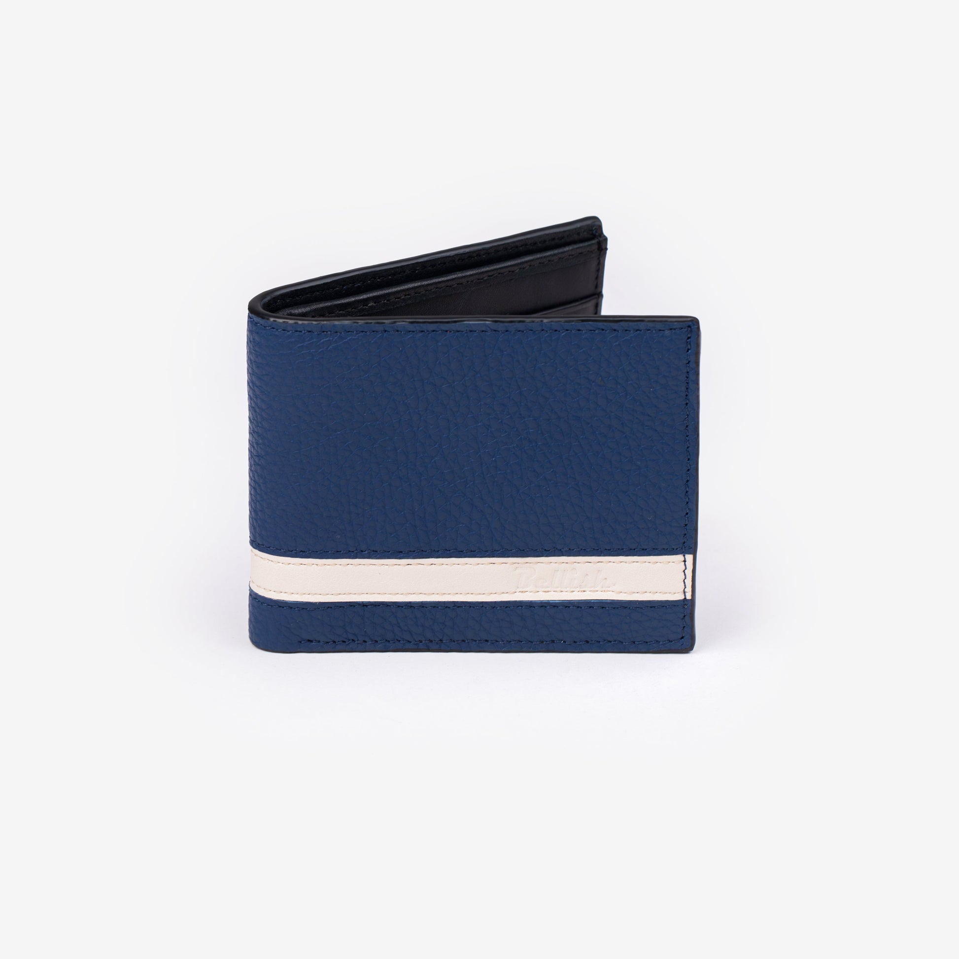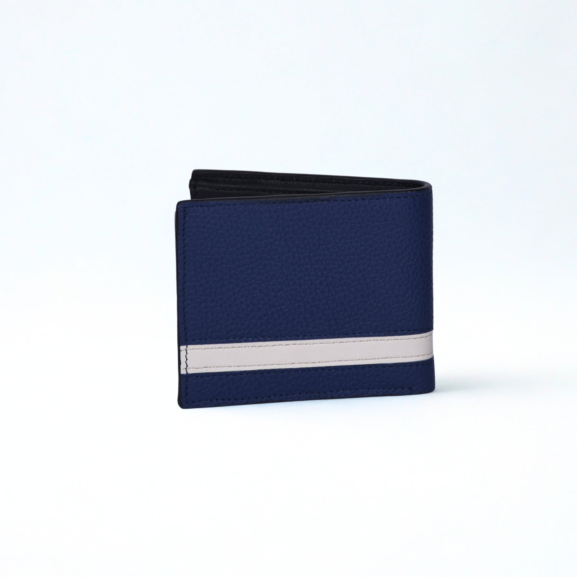 Crafted in premium navy leather, this bi-fold wallet features a contrast stripe for timeless style. Slim, durable, and designed for everyday carry—your go-to men’s leather wallet.