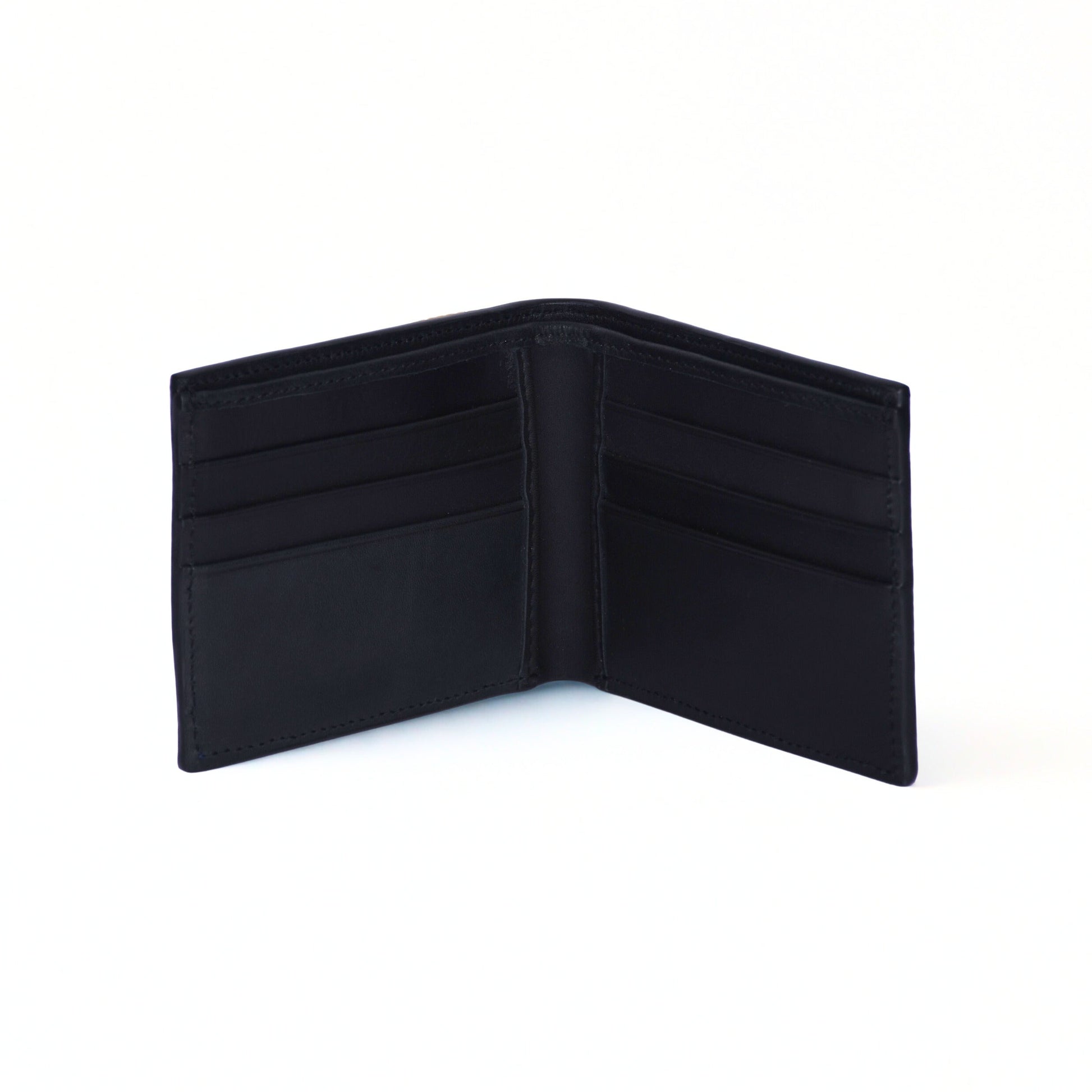 1 main interior money compartment, 6 card slots, 2 slip pockets.
