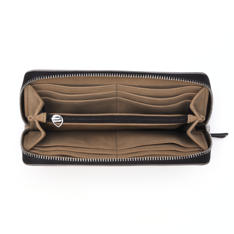 2 main money compartments, which fits mobile phone as well, 1 compartment with zipper closure, 12 cards slots