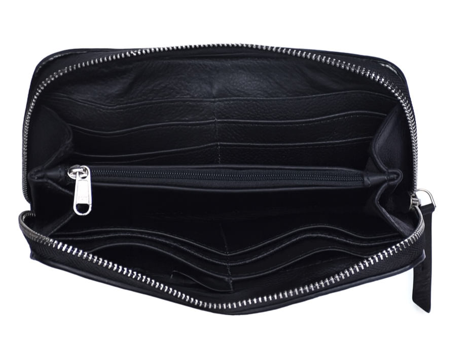 2 main money compartments, which fits mobile phone as well, 1 compartment with zipper closure, 12 cards slots